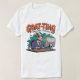 Dieses weiße Kleidungsstück verfügt über eine Cartoon-Ziege mit Sonnenbrille und einen Anzug, die an einem Schreibtisch mit einer Kaffeetasse sitzt. Der Text oben lautet "GOAT-TING" und darunter steht "DINGE EVENTUELL GETAN". Es ist ein humorvolles Design, das auf dem Wort "Zaudern" spielt und dem Bild einer geschäftlichen Ziege.