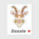 Ein humorvoller und skurriler Aufkleber mit Ziegenkopf, Sonnenbrille und einem breiten Lächeln. Die Ziegenaugen sind mit einem spielerischen Tinkle belebt, die spitzen Hörner sind mit bunten Blume geschmückt. Das Gesamtdesign ist fröhlich und leichtsinnig, perfekt um eine Touch Spaß und Spaß zu jeder Nachricht oder Social Media Post hinzuzufügen.