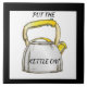 Wasserkocher im Rücken. Zieh den Kettle an! Bearbeitbarer Text.