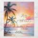Das Hochzeitsdesign des Strandes umfasst den Sonnenuntergang des Abends, Palmen, das blaue Meer und den Sandstrand. Personalisieren Sie mit Ihrem eigenen Text. Verwenden Sie das Tool Design bearbeiten, um die Größe, den Stil oder die Farbe des Schriftartes zu ändern. Karo die ganze Kollektion für Einladungen, passende Gefälligkeitstaschen, Aufkleber, Dankeschön Karten, Banner und mehr...