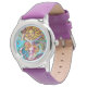 Kinderuhr aus Edelstahluhr mit lila Lederarmband