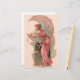 Elegante Jugendstil-Vintage Frauenfigur mit Mond und Blume in antiken Rosa.