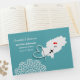 Ein lustiges und dennoch stilvolles Gästebuch für Paare, die in Ibiza, Spanisch Balearen, heiraten, mit einer weißen Silhouette auf aquamarinen mit süßen roten Lieben und so einfach mit Ihren persönlichen Namen und Hochzeitsdatum anpassen