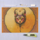 Ziereleganz: Ein Portrait einer Katze. Die ausdrucksstarken roten Augen fangen sofort das Auge. Die Stirn der Katze ist mit einem zarten Ziermuster dekoriert, das an zarte, gekrümmte Linien und Blumenmotive erinnert und dem Bild eine elegante Touch verleiht. Die Farbpalette ist vorwiegend warm, mit leuchtend orangen und schimmernden goldenen Farbtönen, die Wärme und Lebendigkeit ausstrahlen.