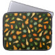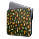 Dieser Laptop-Ärmel hat kleine Tore in Grün-, Gelb- und Orangetönen auf dunkelgrünem Hintergrund.