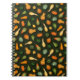 Dieses Notebook verfügt über kleine Gourds in den Farben Grün, Gelb und Orange auf dunkelgrünem Hintergrund.