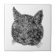 Schwarz-Weiß-Zierkopf einer Katze, von einem echten Tier inspiriert und ursprünglich mit Stift auf Papier gezeichnet.
