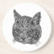 Schwarz-Weiß-Zierkopf einer Katze, von einem echten Tier inspiriert und ursprünglich mit Stift auf Papier gezeichnet.