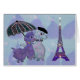 Grafische Illustration der Pudel, die einen Sonnenschirm in Paris teilen.