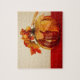 Foto eines Zierkürbis mit Herbstblättern und Beeren.