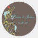Zierweine/Aquablau/Chocol Hochzeitsaufkleber Runder Aufkleber