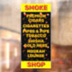 In diesem Customize Smoke Shop Zigaretten Zigarren Zigarren Tabak Fenster Klammern Ich hoffe, ein helles Auge auffällige Werbefenster Zeichen geschaffen haben. Die hellgelben Verbote mit rotem SMOKE SHOP sollten ein wenig Aufmerksamkeit erregen. Im Hintergrund des schwarzen Abschnitts habe ich ein Muster von Packungen mit Zigaretten, Zigarren und traditionellen Tabakpfeifen hinzugefügt. Ich werde dieses Design in mehreren Größen und vielleicht auch auf Bannern, um an der Seite Ihres Shops zu befestigen, wenn der Verkehr ausgesetzt. Schauen Sie in meiner Rauchshop-Kollektion nach weiteren Schildern.