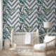 Diese elegante Tapete zeichnet sich durch ein Zickzackmuster und Vögel aus.