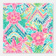 Ein nahtloses, prächtiges Muster mit winzig grünen und rosafarbenen Zickzacksack, mit rosa Blume mit grünen Blätter auf einem minzigen grünen Hintergrund. Das Design verbindet gewagte geometrische Elemente mit charmanten Blumen und schafft so einen frischen und stilvollen Effekt.