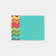 Diese Post-It-Noten haben ein Design von Zickzacklinien in den 1970er Jahren in Gelb, Orange, Rot, Grün und Blau auf einem braunen Feld.