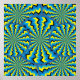Zigzag-gemusterte Räder drehen in entgegengesetzter Richtung in diesem faszinierenden hypnotischen und psychedelischen Posterbild der illusorischen Bewegungsvielfalt. Du wirst deinen Augen nicht glauben!