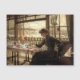 Viktorianische Zeitalterung der jungen Frau in ihrer Schiffshütte mit großem Fenster mit Blick auf Schiffe im Hafen. Vintage Kunstmalerei aus England von James Tissot.