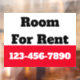 Dieses Schild ist strahlend rot, schwarz und weiß. Sie können den Text an Ihre Bedürfnisse anpassen. Sie können Ihre individuelle Nachricht (hier gezeigt: Zimmer zu vermieten) und Telefonnummer hinzufügen. Der obere Teil ist weiß mit schwarzem Text. Der untere Teil ist strahlend rot mit weißem Text für Ihre Telefonnummer oder individuellen Text. Der gesamte Text kann bearbeitet oder gelöscht werden.