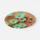 Diese lebendige botanische Studie zelebriert die Zinnia elegans , die in einem lockeren, ausdrucksvollen Stil dargestellt werden, der sowohl natürliche Schönheit als auch künstlerische Interpretation einfängt. Türkisfarben, Buttergelb und weiche rosa Blütenblätter strahlen aus reichen braunen Zentren aus und kontrastieren mutig mit einer warmen, erdigen Kulisse von Terrakotta und verbranntem sienna. Die strukturierten Pinselstriche erinnern an ein bewegtes Gefühl, als ob die Blume sanft in einem sonnenbeleuchteten Garten schlängeln.