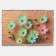Diese lebendige botanische Studie zelebriert die Zinnia elegans , die in einem lockeren, ausdrucksvollen Stil dargestellt werden, der sowohl natürliche Schönheit als auch künstlerische Interpretation einfängt. Türkisfarben, Buttergelb und weiche rosa Blütenblätter strahlen aus reichen braunen Zentren aus und kontrastieren mutig mit einer warmen, erdigen Kulisse von Terrakotta und verbranntem sienna. Die strukturierten Pinselstriche erinnern an ein bewegtes Gefühl, als ob die Blume sanft in einem sonnenbeleuchteten Garten schlängeln.