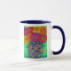 Blumenmalereimotiv des bunten, funky Zinnia durch Lisa Lorenz auf einer Kaffee-Tasse.