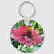 Zinnia Honey Bee Schlüsselanhänger. Der individuell gestaltbare Schlüsselanhänger besticht durch eine kleine Honigbiene, die auf einer rosa Zinnia-Blume fröhlich aufbläst.