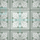 Kunsthandwerk inspirierte Kachelmuster in einer Farbpalette, die typisch für die Zeit ist, mit anpassbarem Monogramm. Muster in großem Maßstab: Kacheln von 6 Zoll.