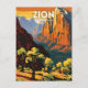 Zion National Park Illustration Retro dekorative Postcard.