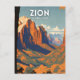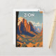 Zion National Park Illustration Retro Postcard.