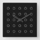 Wanduhr "Zircles" - Weißes Motiv auf schwarzem Hintergrund.