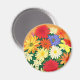 Magnet als detaillierte Abbildung von Gänsebläschen und Asterern in hellen Orange-, Gelb- und Rottönen