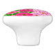 Keramik Knopf in einer detaillierten Abbildung von Fuchsia und sanft rosa Chrysanthemen auf grünem Hintergrund