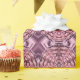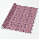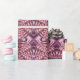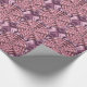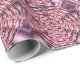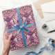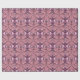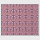Dieses eindrucksvolle Packpapier zeichnet sich durch ein sich wiederholendes Muster einer aufwändigen abstrakten Mandala aus kleinen, wirbelnden Satin-Stofffalten in leuchtenden Weintönen aus, lila und rosa.