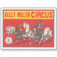 Vintages Kelly Miller Zirkusposter, das zwei Männer in Kampfwagen beim Rennen zeigt.
