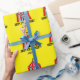 Thema-Zirkuszelt-Verpackungspapier des Kindergeburtstag-Party carnaval. Bunte gelbe Geschenkverpackung für Kinder. Addieren Sie Ihren eigenen personalisierten Namen und Alter. Neutraler Entwurf des Geschlechtes für Jungen und Mädchen. Auch nett für themenorientierte Babyparty.