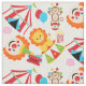 Wenn Sie Liebe der Zirkus, helle Farben, Spaß Zeit festsetzen, werden Sie Liebe unser große Spitzen-Zirkusgewebe, das einen weißen Hintergrund mit dem roten, weißen und blauen gestreiften Zelt der großen Spitze, einem Löwe, jonglierenden Bällen des Affen, Popcorn, Zuckerwatte, Karten und Clowns kennzeichnet!