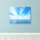 Weiße, weiße Wolkenwolke im blauen Himmel mit blauem Wasser des Lake Michigan