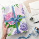 Aquarellmuster mit verschiedenen Blume und blauem Tittenvogel mit Aquarellfarben.