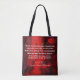 Diese Tote-Tasche, die von ZoeSPEAK entworfen wurde, enthält ein Zitat von Lao Tzu, einem antiken chinesischen Philosophen. Das Zitat beginnt mit unseren Gedanken und endet mit unserem Schicksal, viel darüber nachzudenken. Der Hintergrund ist ein originelles, abstraktes Kunstwerk von ZoeSPEAK, dessen Formen in Rottönen gehalten sind und das sich hinter einem Muster von Regentropfen in Gelbtönen befindet.