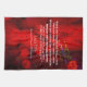 Dieses Küchentuch zeigt ein Zitat von Lao Tzu, einem antiken chinesischen Philosophen. Das Zitat beginnt mit unseren Gedanken und endet mit unserem Schicksal, viel darüber nachzudenken. Der Hintergrund ist ein originelles, abstraktes Kunstwerk von ZoeSPEAK, dessen Formen in Rottönen gehalten sind und das sich hinter einem Muster von Regentropfen in Gelbtönen befindet.
