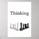 Das Thinking Quote Black Text Schach Pieces Poster zeigt das Zitat "Denken" vor einem weißen Hintergrund über Schachbrettmuster. Sie können Ihren eigenen Text personalisieren oder ihn so verlassen, wie es ist. Von Makrovektoren/Freepik/Stargatez-Designs entworfen