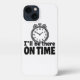 Das Design hat ein Lügenziffer "Ich bin pünktlich da". Man könnte sich vorstellen, dass dies in einem humorvollen Rahmen verwendet wird, z. B. auf einem T - Shirt, einer Tasse oder einem Poster. Diese Art von Design spielt auf der universellen Erfahrung von Menschen, die gewöhnlich zu spät sind, und macht es relativierbar und lustig.
