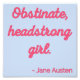 Niedliches Design, perfekt für alle, die Elizabeth Bennet Liebe! 'Obstiniertes, kopfüres Mädchen.' Jane Austen zitiert aus dem Buch Pride and Prejudice. Wo ist unser Mr. Darcy? Akzentuieren Sie Ihren Stil und Raum mit dieser inspirierend Kunst! Ein tolles Geschenk für klassische Literaturfans.