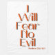 Diese Fleecedecke zeigt die Psalmen 23:4 KJV Bibel Versschrift "I Will Fear No Evil" in einem einzigartigen Schriftart mit orangefarbenen Buchstaben schwarze Kontur plus Bibelziitation. Dieses Blanket besteht aus 100% schmetterlicher, weicher und gemütlicher Polyester-Fleece mit einem lebendigen, vollfarbigen Sublimationsdruck und doppelkantiger Heftung mit einer cremefarbenen Rückmaschine, die waschbar ist.