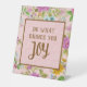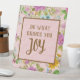 Inspiration "Do was bringt Ihnen Freude" Zitat auf rosa und weiße Polka Punkt Hintergrund mit rosa und lila floralen Rahmen.
