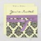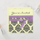 Entwurf hat ein elegantes schwarzes Damast Muster gegen einen hellen Zitronenhintergrund mit einem lila Band des Imitats. Die Rückseite der Karte hat einen niedlichen kleinen Reim. Aller Text ist völlig kundengerecht. Sie können die Hintergrundfarbe der Karte, indem Sie auf auch ändern "klicken, besonders anfertigen" und dann "färben Sie". Einladung wird hier in einem Leinenende gezeigt. andere Ende sind verfügbar!