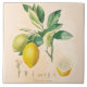 6 x 6-Zoll-kennzeichnet starke glatte Keramikfliese Zitronenfrucht und -blüte mit französischem Text von den Vintagen französischen botanischen Texten. Perfekter Akzent für eine französische Land-Küche oder Bauernhaus-Küche.