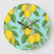 Zitronen, lebendiger, blauer Hintergrund Nahtlos. Große Wanduhr