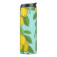 Zitronen, lebendiger, blauer Hintergrund Nahtlos. Thermosbecher