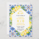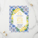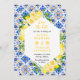 Diese lustige und skurrile Save the Date Einladung mit AquarellZitronen und Blättern auf mediterranem Kachelboden. Der Text kombiniert handgeschriebene Skript- und Serif-Schriftart für ein stilvolles und modernes Aussehen. Das ist perfekt für eine sommerliche rustikale Hochzeit.